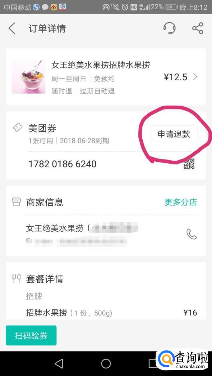 在弹出的界面点击申请退款,如图。