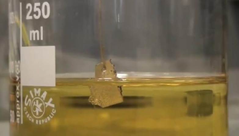 王水可以溶解金。王水又称“王酸”、“硝基盐酸”。是一种腐蚀性非常强、冒黄色雾的液体,是浓盐酸(HCl)和浓硝酸(HNO₃)按体积比为3:1组成的混合物。是少数几种能够溶解金(Au)物质的液体之一,名字正是由于腐蚀性之强而来。