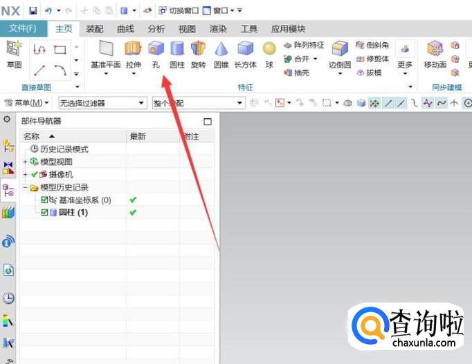 之后选择命令栏里的孔命令。