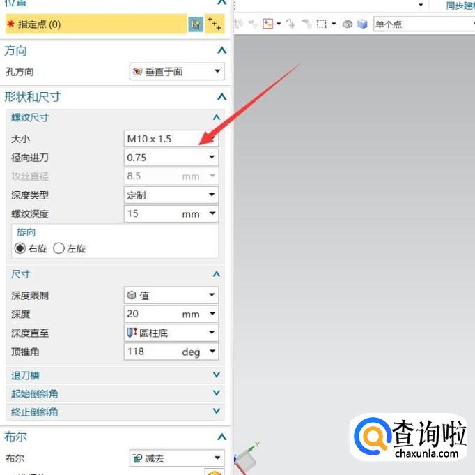 之后选择螺纹的规格,大小和深度。