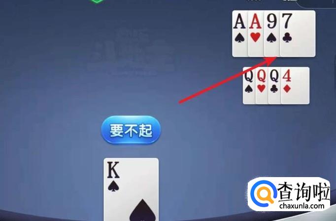 对方出三个Q,但我们报单一个K了,对方牌子里还有单张的7和9。当对方出这二个单牌中的其中一个时,我们的K就能过了。这样就顺利过关了。