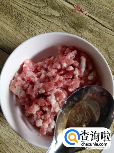 准备肉末,放入料酒、生抽、耗油、蛋清、香油搅拌均匀。甜面酱倒在碗内,放一杯水进行稀释。