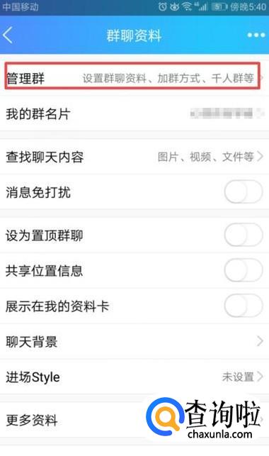 之后我们点击管理群;