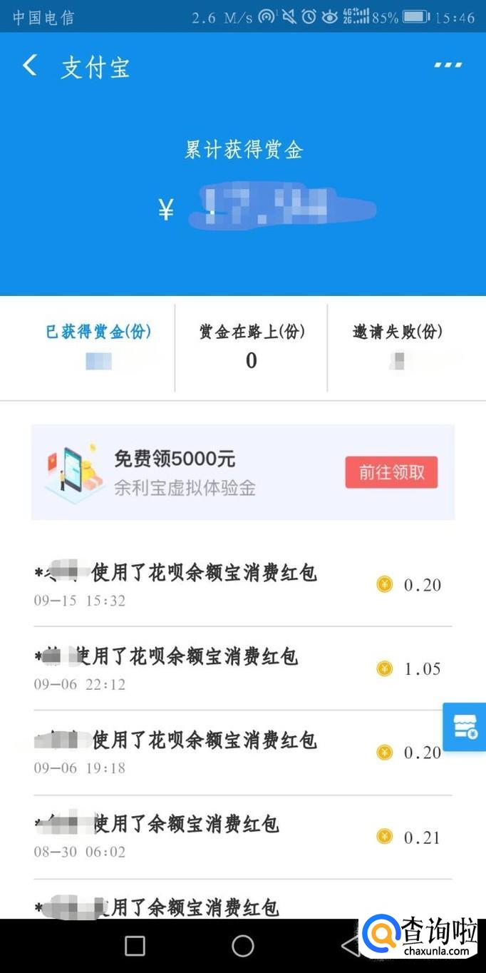红包被消费以后,你就可以拿到赏金啦。如果你也想要红包你可以去扫其他人的。