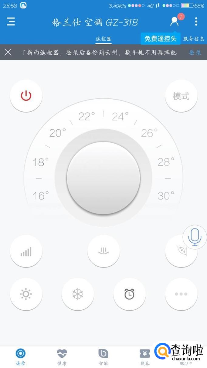 找到型号之后就可以开始测试了,对着空调按键看空调会不会开机,如果不会的话就点击下一个,再重复到有反应位置,点击确定就可以开始遥控了。
