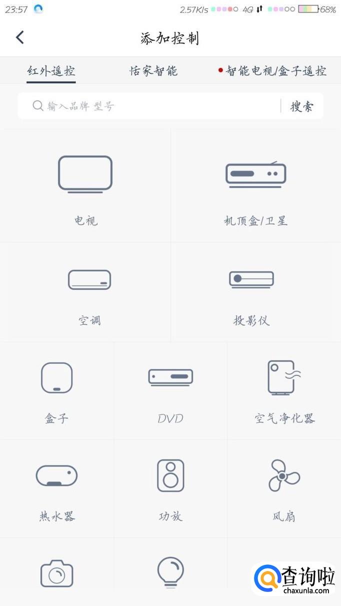 确定自己想要遥控控制的机器的种类,然后选择相应的机器类型,例如我选择空调。