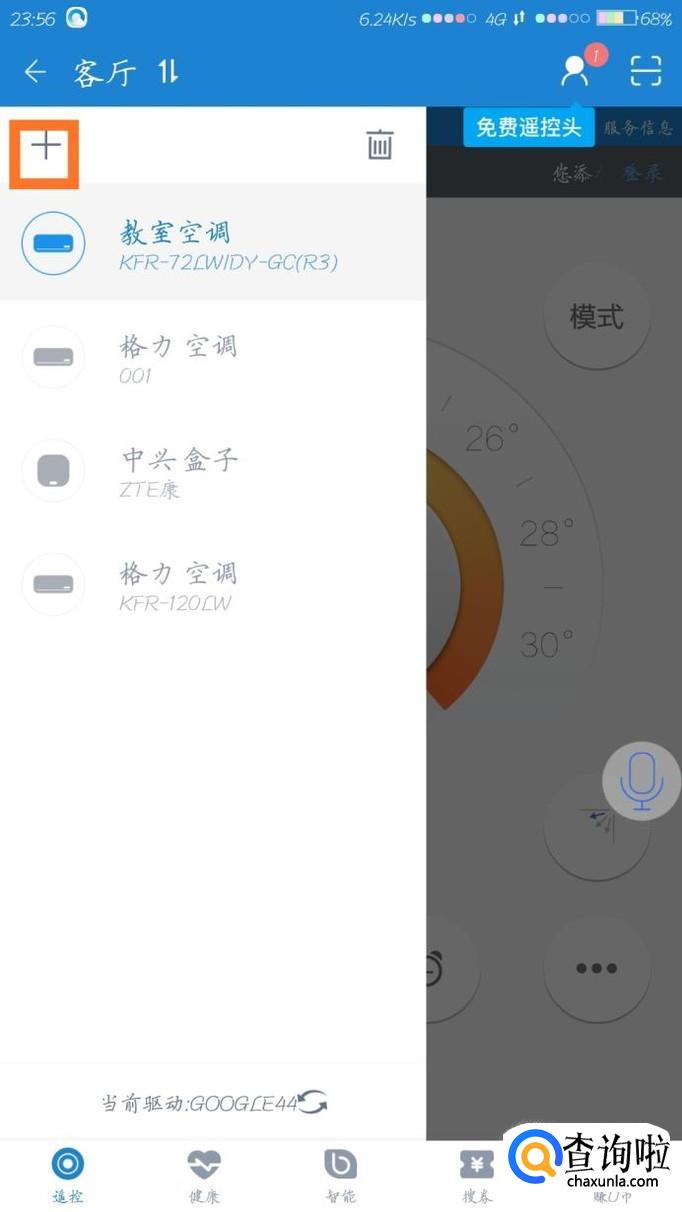 安装打开遥控精灵APP,点击左上角的加号键。