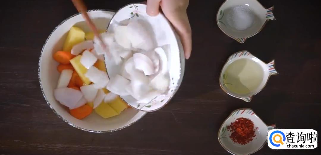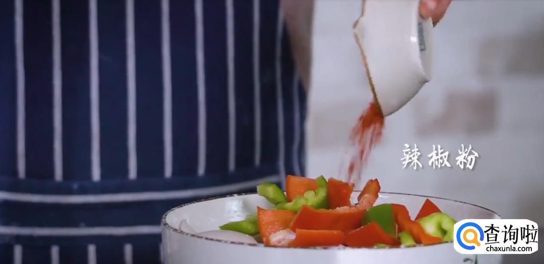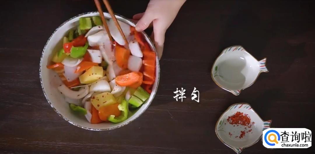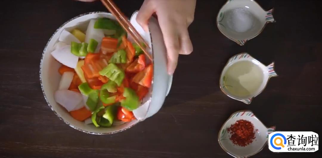加入盐,油,辣椒粉搅拌均匀。