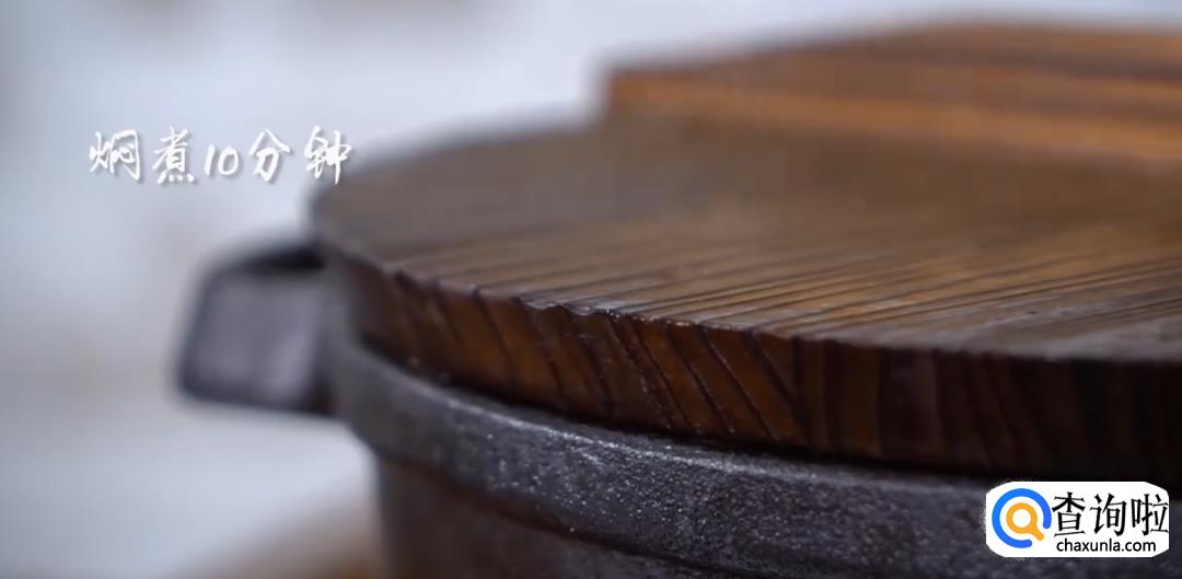 倒入辣椒油,胡椒粉焖煮12分钟。