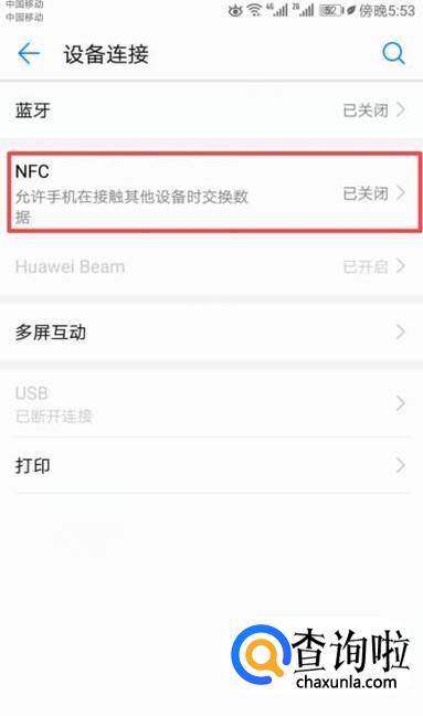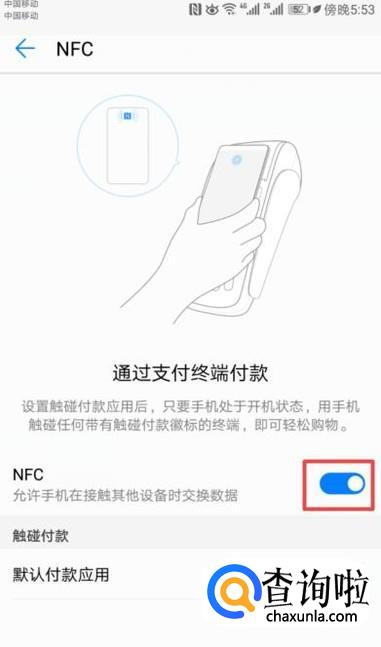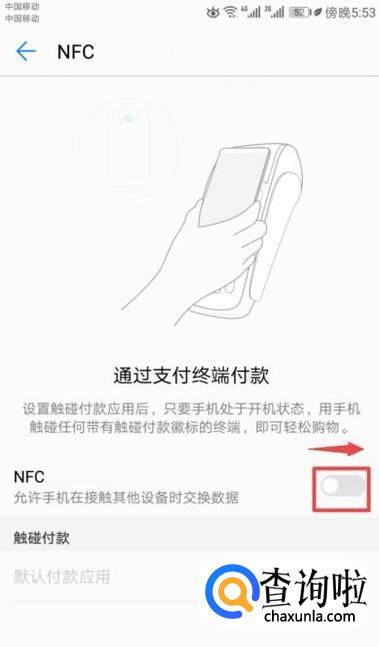 弹出的界面,我们将NFC的开关向右滑动打开;