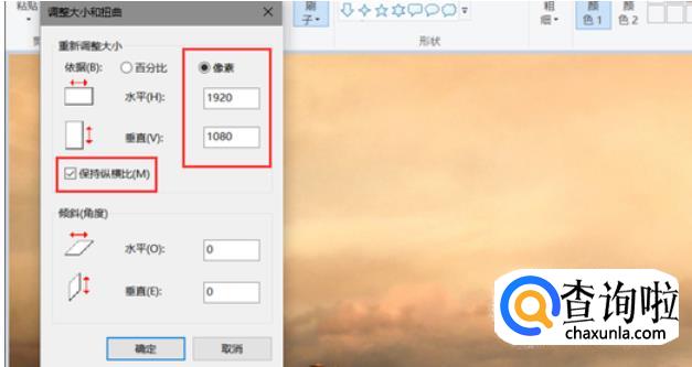 首先用微软自带的【画图】软件打开你想要处理的图片,点击上方工具栏中【扭曲图片】图标,点击【像素】,去掉【保持横纵比】的勾,改变像素,这样就可以了。