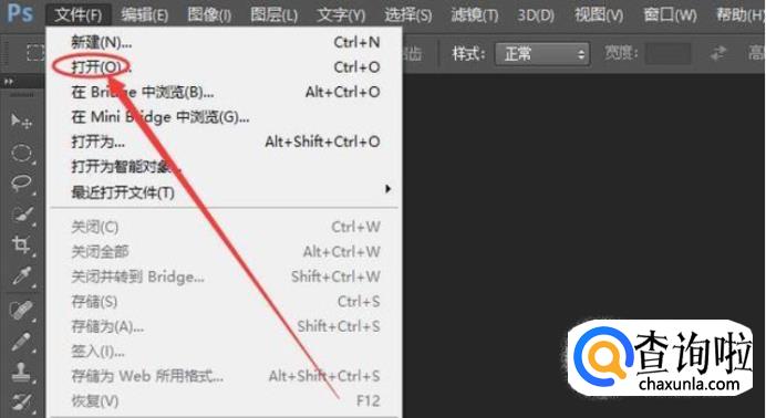 我们需要打开PS,点击文件,选择打开,打开图片。我们可以在下方看到图片大小。点击图像,选择图像大小。然后将分辨率调小,如图大小也变小了,然后点击确定保存即可。