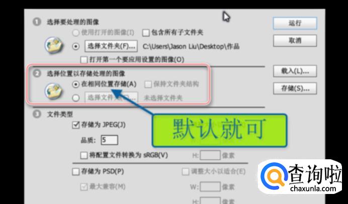 打开ps软件,选择文件>脚本>图像处理器,弹出对话框设置参数。在图像处理器设置对话框中,首先点击“选择文件夹”,然后选择需要处理的图片所在的文件夹,点击确定。在图像处理器设置对话框中的第二个选项,保持默认的“在相同位置存储”就好。
