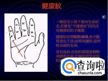 健康纹,在大类里也属于事业线,健康纹的走向可以体现人的健康状况。