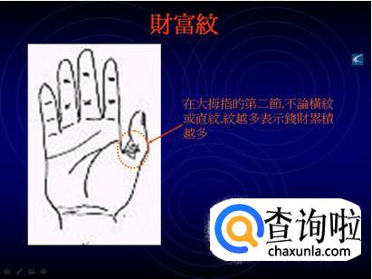 财富纹,一个人积累的财富可从中体现出来,这个位置的纹路可谓愈多愈佳。