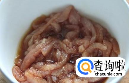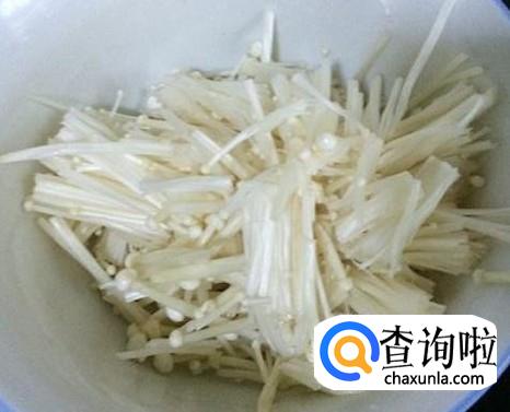 首先把金针菇清洗干净,然后切成几段,瘦肉切成丝,加适量的盐、生抽、料酒腌制几分钟。