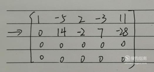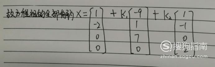 然后屋面将增广矩阵华为阶梯型矩阵,一样的,如下图所示。