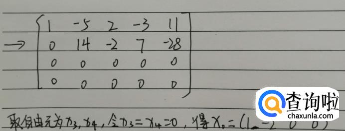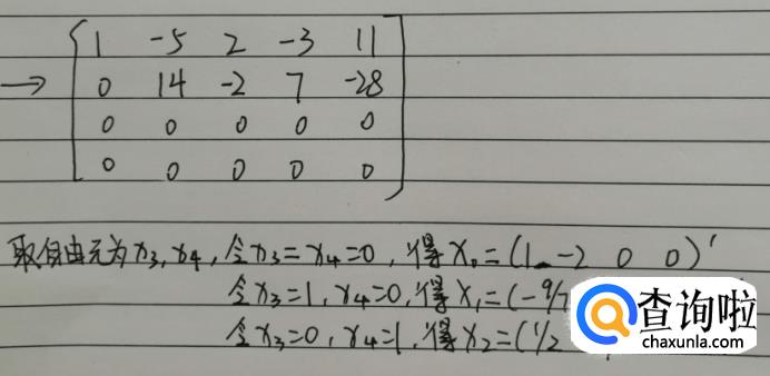 接下来我们开始取自由元,并令自由元为0,得出AX=B的特解X0。