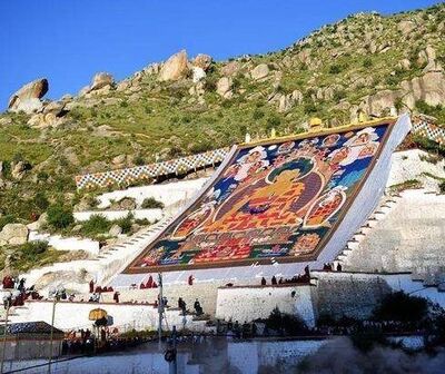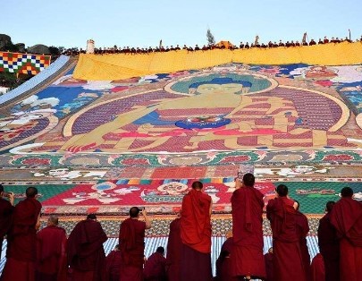 传统的雪顿节以展佛为序幕。展佛即晒佛,拉开佛像——巨大的唐卡佛像遮盖有黄色丝布,缓缓的挂起丝布,佛像一点一点的展现在人们的面前,那一刻现场沸腾了起来。 2006年5月,西藏自治区申报的雪顿节经国务院批准列入第一批国家级非物质文化遗产名录雪顿节又名藏戏节,是西藏藏族的传统节日之一,在藏语中,“雪”是酸奶子的意思,“顿”是“宴”、“吃”的意思,雪顿节按藏语解释说是吃酸奶子节日。