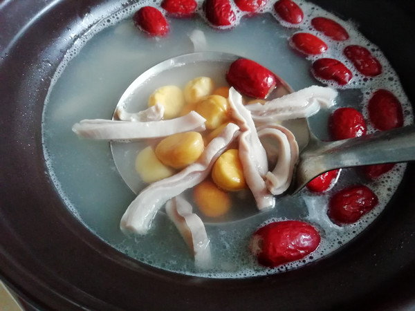 2、栗子软糯香甜,非常温和,对胃黏膜能起到很好的保护作用。而且栗子所含营养素不仅种类多,含量也相当丰富,具体有蛋白质、脂肪、B族维生素等,是健胃不可或缺的基本养料。栗子猪肚一起炖,秋冬季再也不用担心胃寒怕冷。