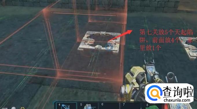 接下来在第七关的时候注意放5个天起陷阱,前面放4个,家里放1个,如下图所示