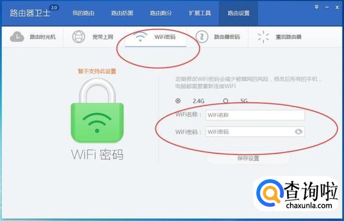 切换到【WiFi密码】选项卡,输入WiFi的名称和密码即可,如下图所示:
