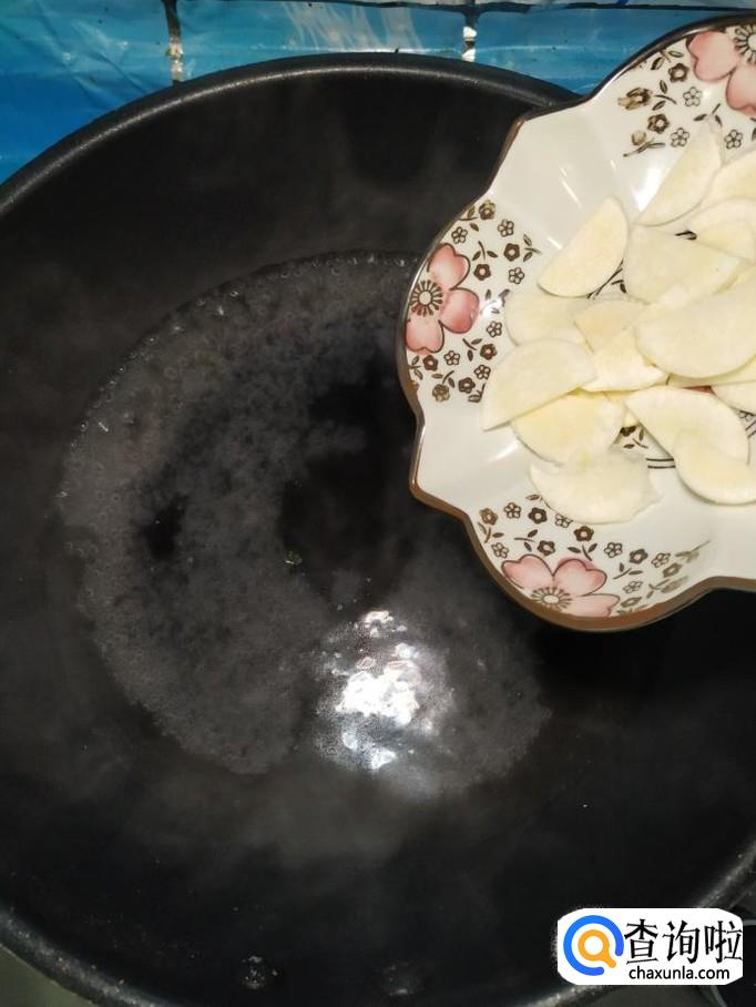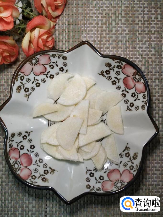 准备适量茭白,洗净后,去除外皮,切成片,注意,茭白要选用比较鲜嫩的,这样口感更好。