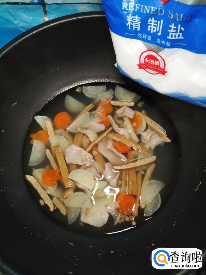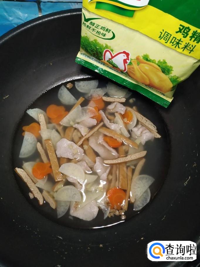 将里脊肉煮熟之后,加入适量盐和鸡精调味,里脊肉是比较容易熟的。