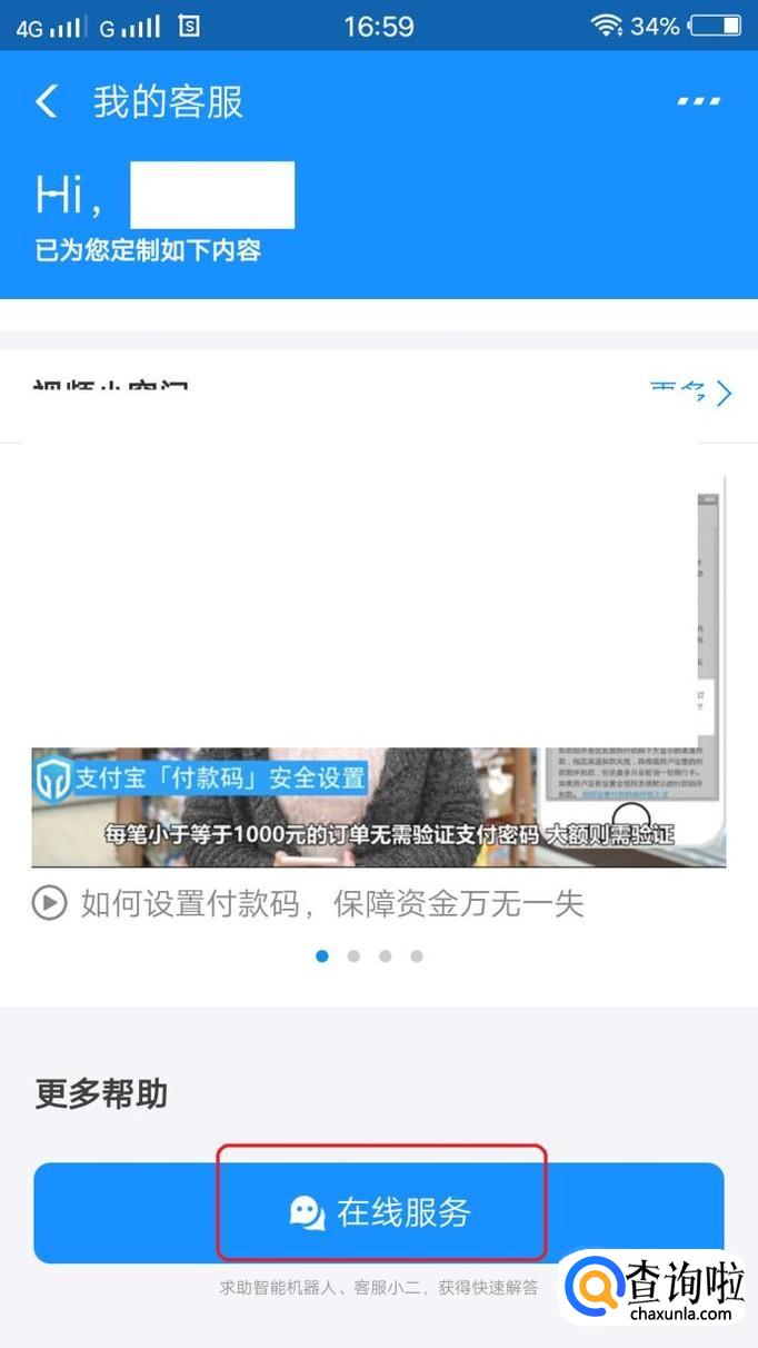 在“我的客服”界面中,把页面一直拉到最底部,可以看到“在线服务”按钮,点击进去。