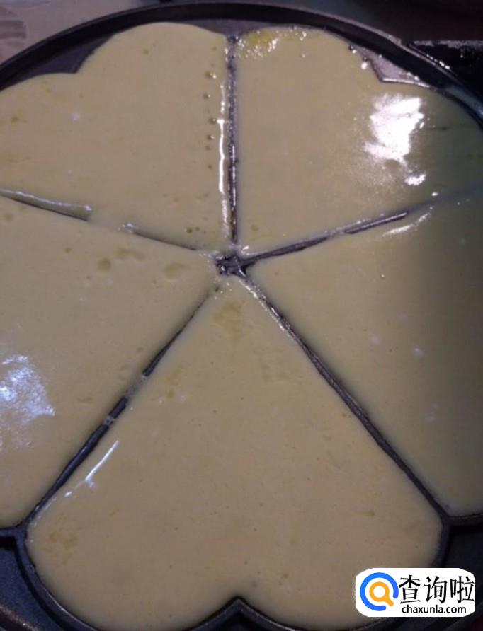 接着我们将电饼锅提前预热五分钟,将搅拌好的蛋奶糊倒入其中,盖上盖子,烘烤八分钟左右