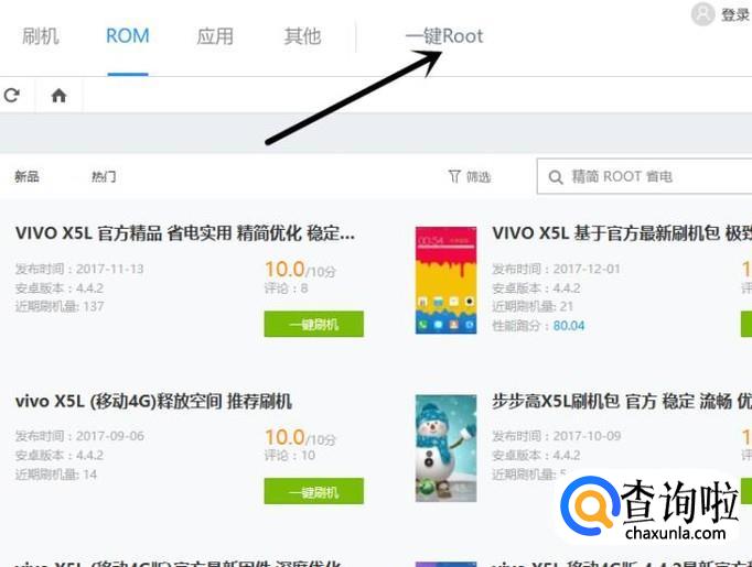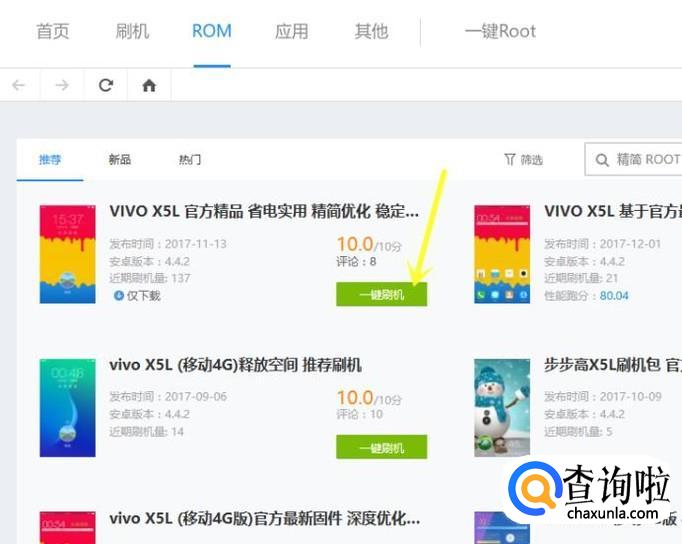 连接完成之后,点击 ROM ,搜索到对于vivo手机的rom,点击一键刷机