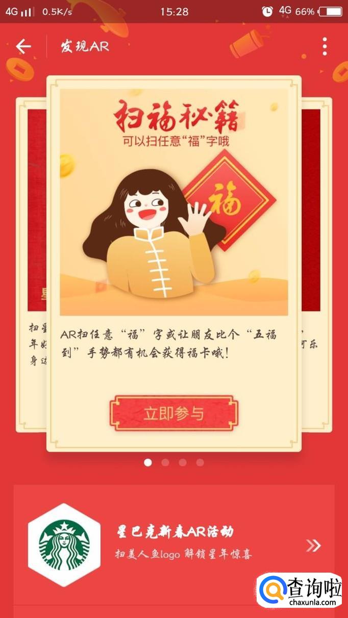 AR扫任意“福”字,或者让朋友比个“五福到”手势就有机会获得福卡哦!