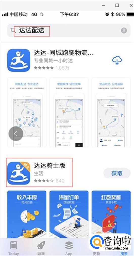 打开下载中心,输入“达达配送”,选择“达达骑士版”进行下载,见下图
