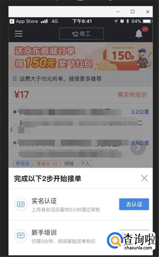 实名认证完成后点击“去培训”,见下图。等实名认证和培训通过后就可以接单了。