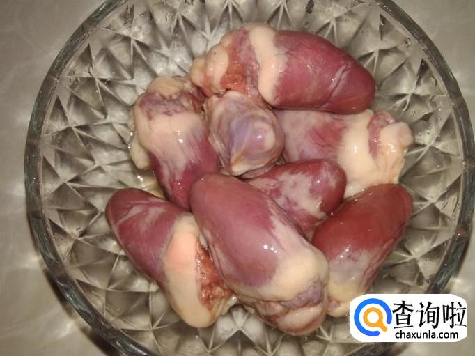 鸭心要选择土鸭的。鸭心、糯米酿准备好。