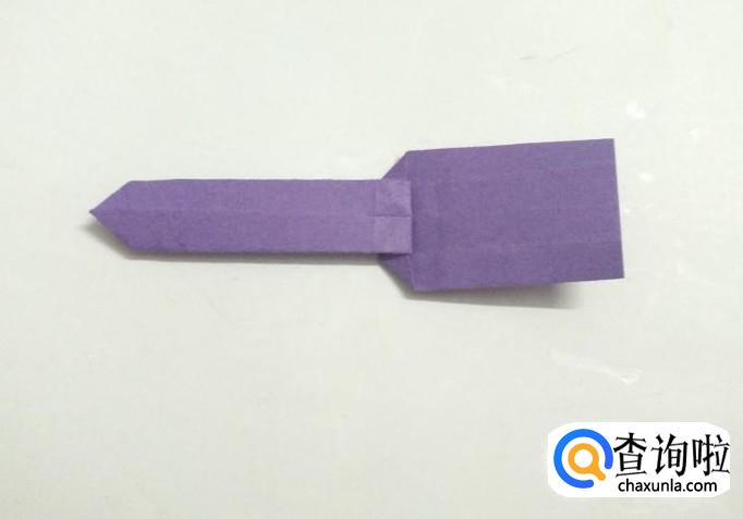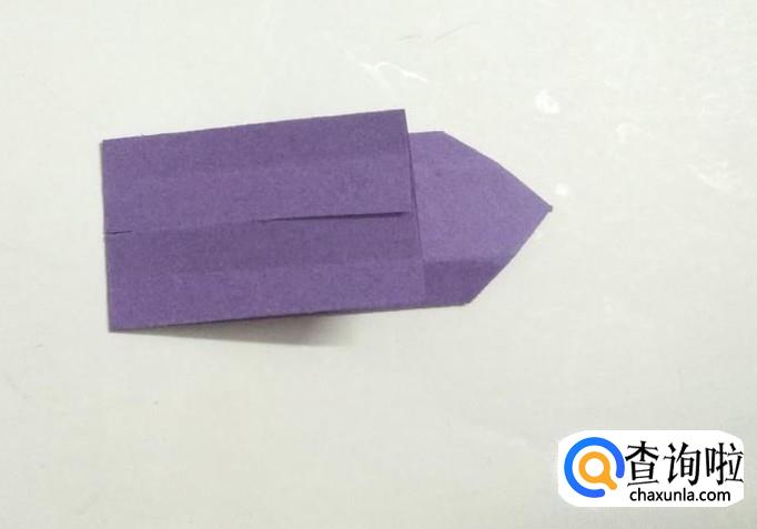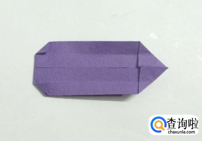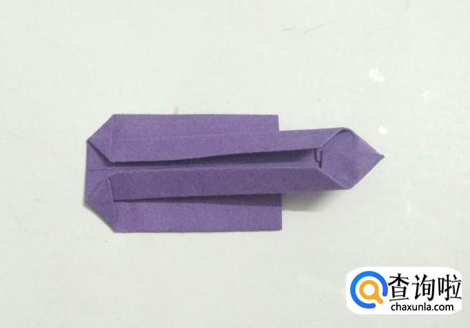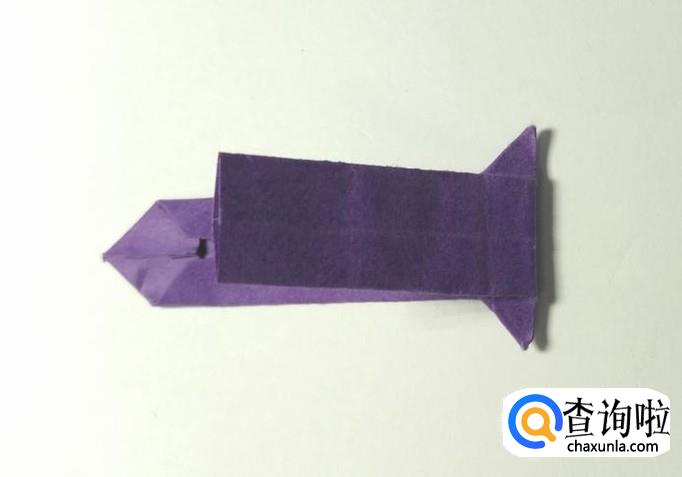 将上步打开,利用小三角折痕向内向下压折成下图的样子。