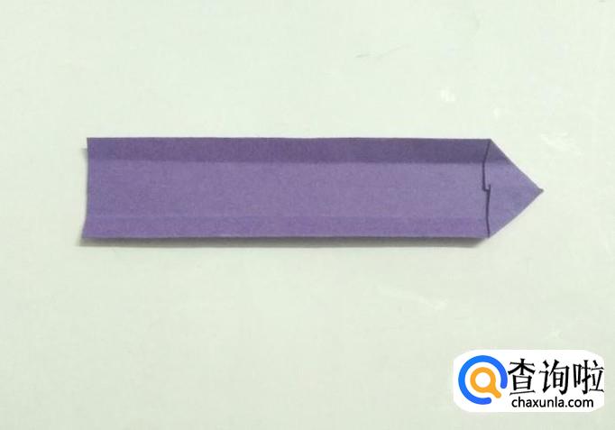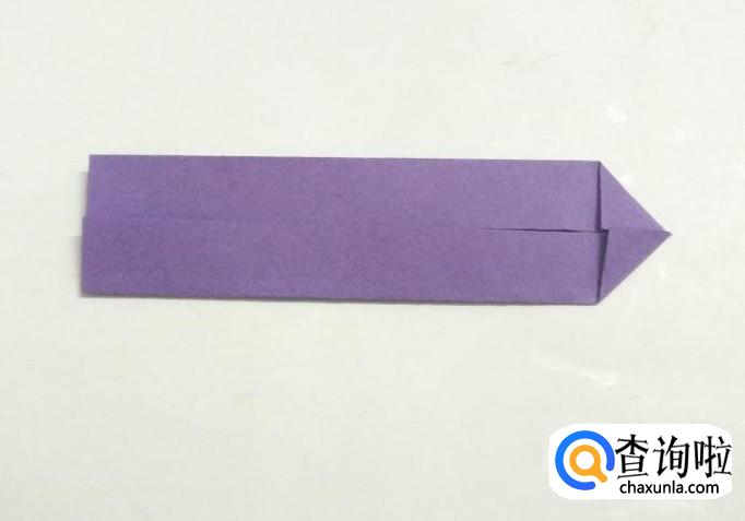 把上步折好的小三角打开,利用折痕向下向内折向中心线。