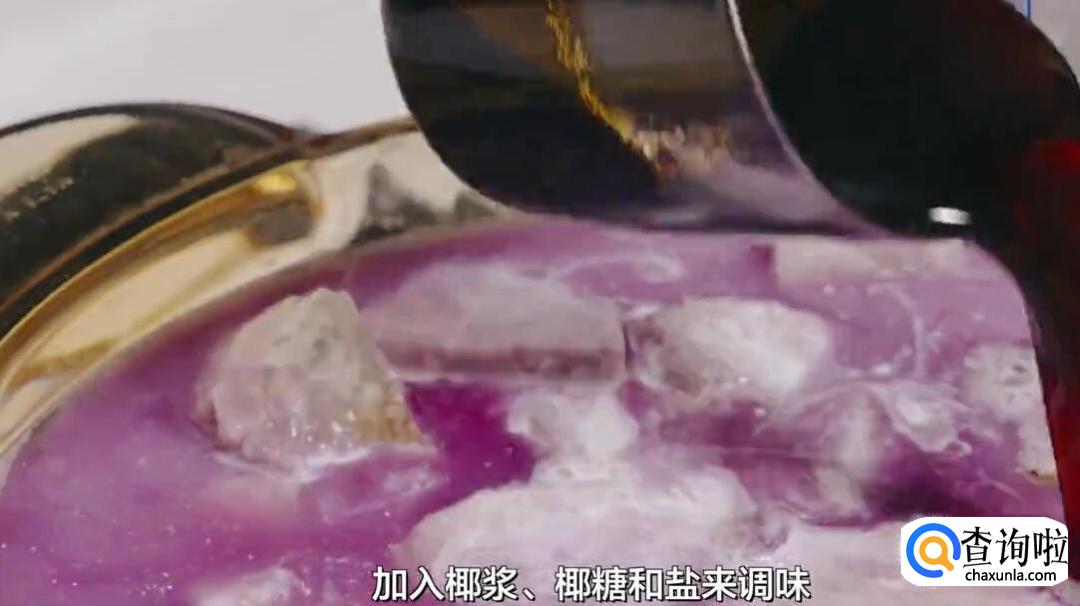 保持中火,煮到芋头熟透后,加入椰浆、椰糖和盐来调味。