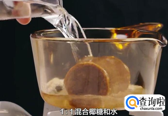 我们首先1:1混合椰糖和水。