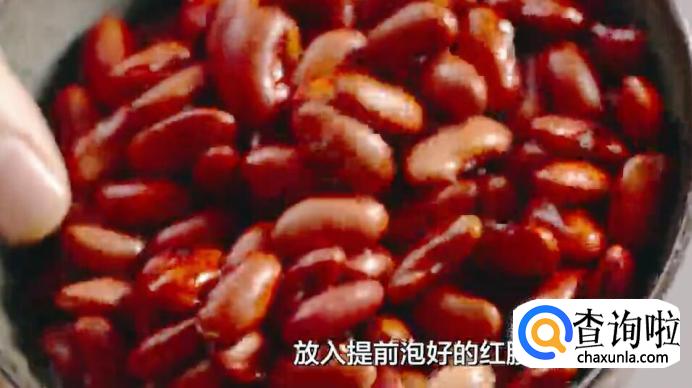 放入提前泡好的红腰豆。