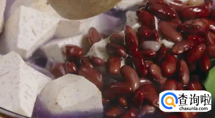 再放入芋头和红腰豆。