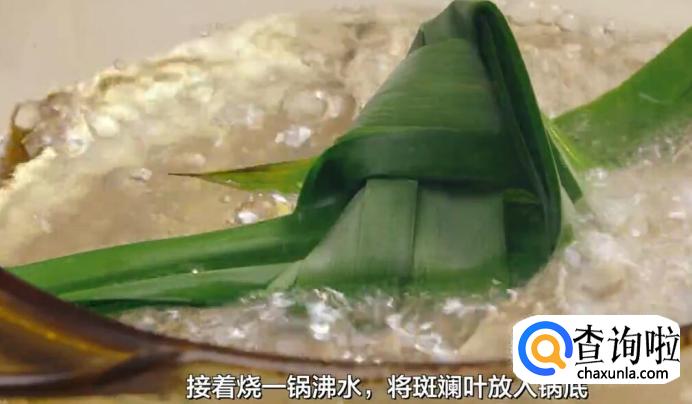 接着烧一锅沸水,将斑斓叶放入锅底。