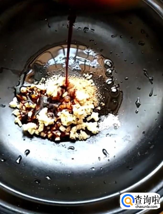 然后我们在一个碗中放入适量的蒜末,再放入盐,鸡精,胡椒粉调味