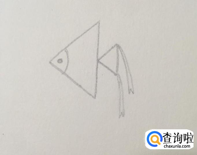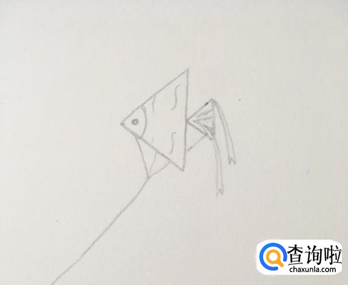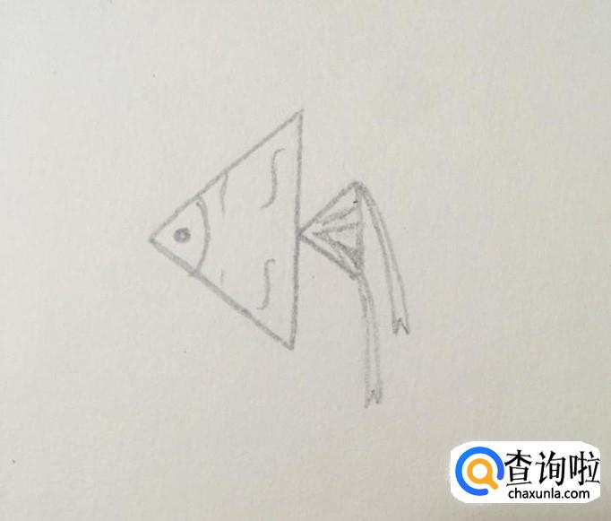 然后,在鱼的尾巴上画两根飘带,如图所示。