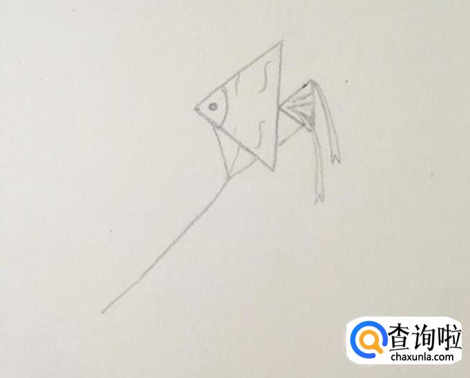 最后,在风筝上画上细线,这样一个风筝就画好了。