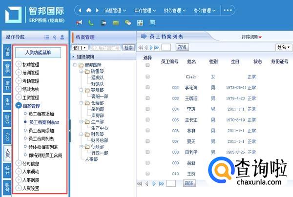 在人资管理环节,从员工招聘到入职培训,以及人事变动和员工档案等,操作过程都能一目了然;同时智邦国际ERP系统还可以与招聘平台对接,避免人资人员在多套系统中频繁切换,从而在各个环节快速提升人资部门的工作效率。