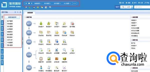 除了支持快速登录,更让人惊喜的是,在智邦国际ERP系统内,能够实现销售、营销、生产、库存、财务、人资、办公等企业经营涉及到的所有流程的统筹化管理,一套软件解决所有管理问题,一个平台兼容所有数据,一次录入实现全面应用。同时,软件采用先进的图形化界面,层次清晰,逻辑严密,员工只要根据左侧功能导航或顶部快捷导航,就可以一步切入到自己日常工作界面,快速进入工作状态。