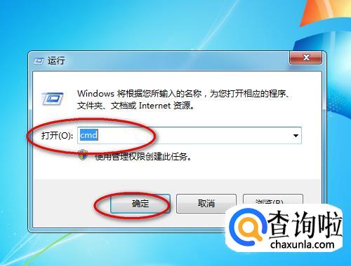 然后在运行窗口的输入框中输入“cmd”,点击“确定”按钮。