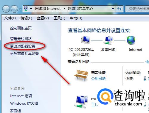 然后再点击左侧的“更改适配器设置”。
