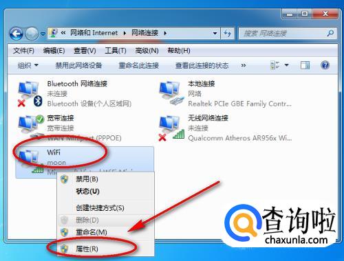 找到网络连接,然后鼠标右击,选择“属性”。